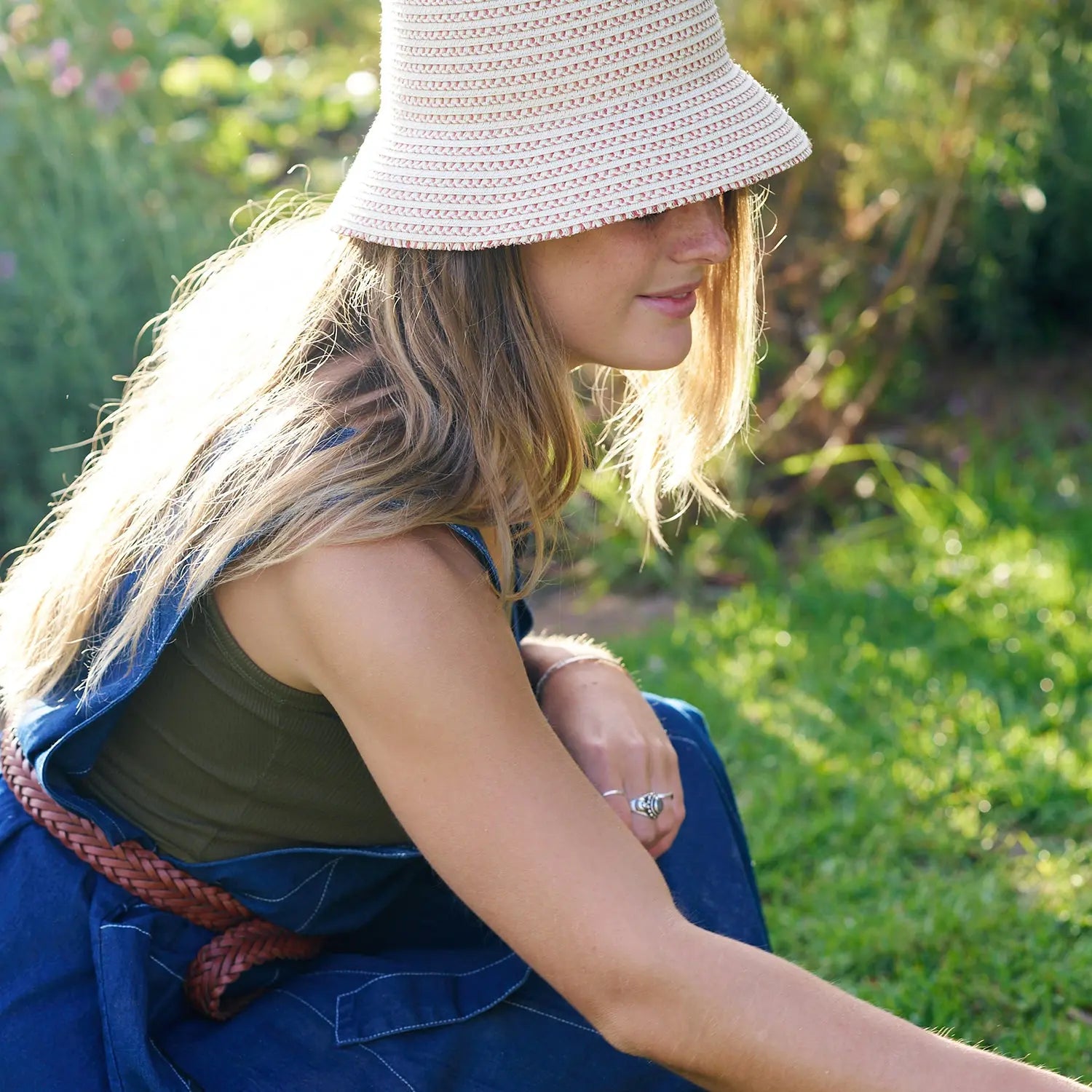 De Marigold Bucket is een lichtgewicht, gemakkelijke zonnehoed geïnspireerd door de charme van goudsbloemen. Het is de perfecte metgezel voor tuinieren, wandelen of ontspannen in de buitenlucht.